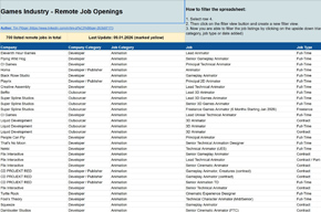 This table is compiled by Tim Plöger, Head of Project Management at Astragon Entertainment, and is constantly updated and kept up to date. It shows current remote job openings in the games industry worldwide.