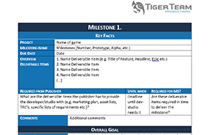 Milestone Definition Template for Developers and Publishers alike, making transparent for both sides what the deliverable items for the upcoming Milestones are.