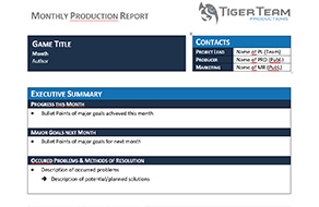 Monthly Report Template for Development Studios, based on the same template as the Weekly Report, but focussing more on the progress of development.