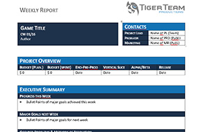 Weekly Report Template for Game Producers, giving all important information about what happened during the week at one glance.